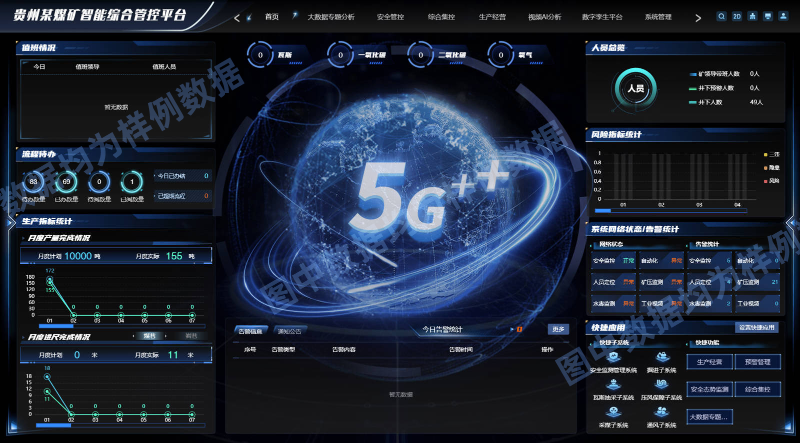 ? ? ? ? 貴州某煤礦積極響應(yīng)貴州省智慧礦山建設(shè)標準及能源局礦山安全管理規(guī)范,以“智能化、一體化、數(shù)據(jù)驅(qū)動”為核心目標,打造覆蓋生產(chǎn)、安全、信息化全鏈條的綜合管理平臺,通過集成物聯(lián)網(wǎng)感知、數(shù)據(jù)分析與智能決策能力,實現(xiàn)煤礦生產(chǎn)動態(tài)實時監(jiān)測、風(fēng)險精準預(yù)警及資源高效調(diào)度,推動傳統(tǒng)礦山向“透明化管控、數(shù)字化運營”轉(zhuǎn)型,為提升安全管理效能、優(yōu)化生產(chǎn)流程及實現(xiàn)可持續(xù)發(fā)展提供標準化、可復(fù)用的智慧礦山解決方案。